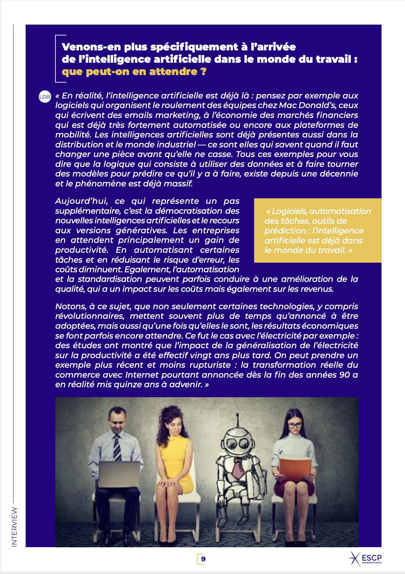 - ESCP Business School (depuis 2022) : rédaction de livres blancs thématiques pour une série « Les managers de demain » sous forme d’interviews de professeur·e·s de l’école.